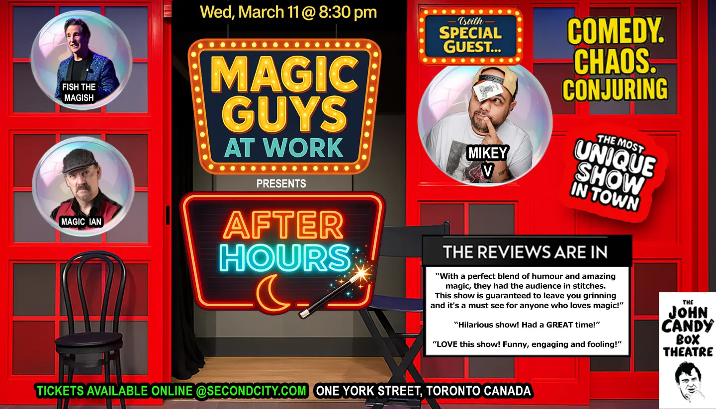 Magic Guys at Work: After Hours is a high-energy night of comedy, chaos, and mind-bending magic that feels just a little more electric once the sun goes down. Starring Magic Ian and Fish the Magish, this late-night edition turns up the laughs, the audience interaction, and the impossible.