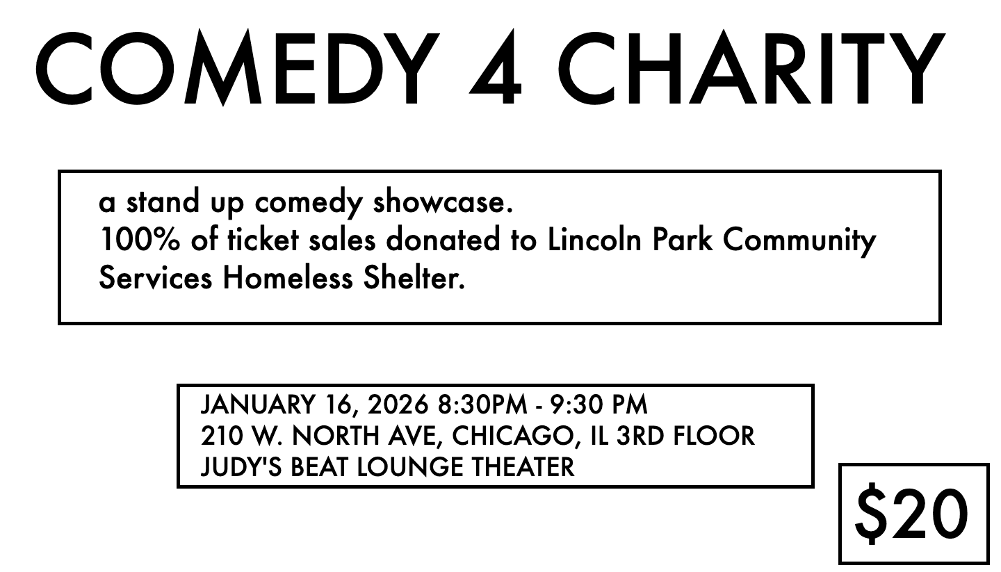 A stand-up comedy showcase for charity. Ticket sales will be donated to Lincoln Park community services, homeless shelter.