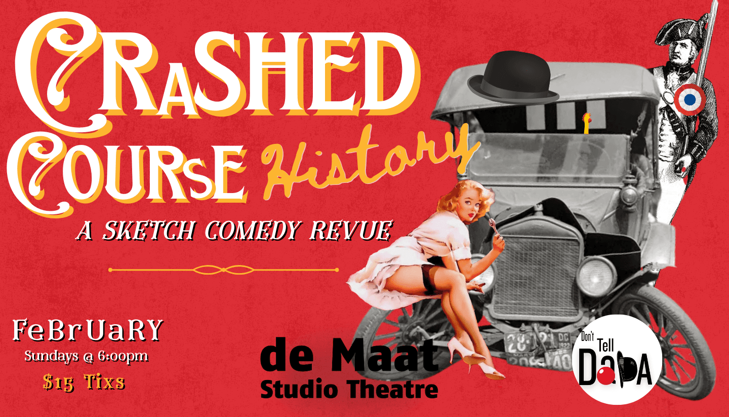 Forget what you learned in school. This is history for weirdos and degenerates. Crashed Course History is an absurdist sketch comedy revue with music, costumes, and some ankle. Presented by Don’t Tell Dada.