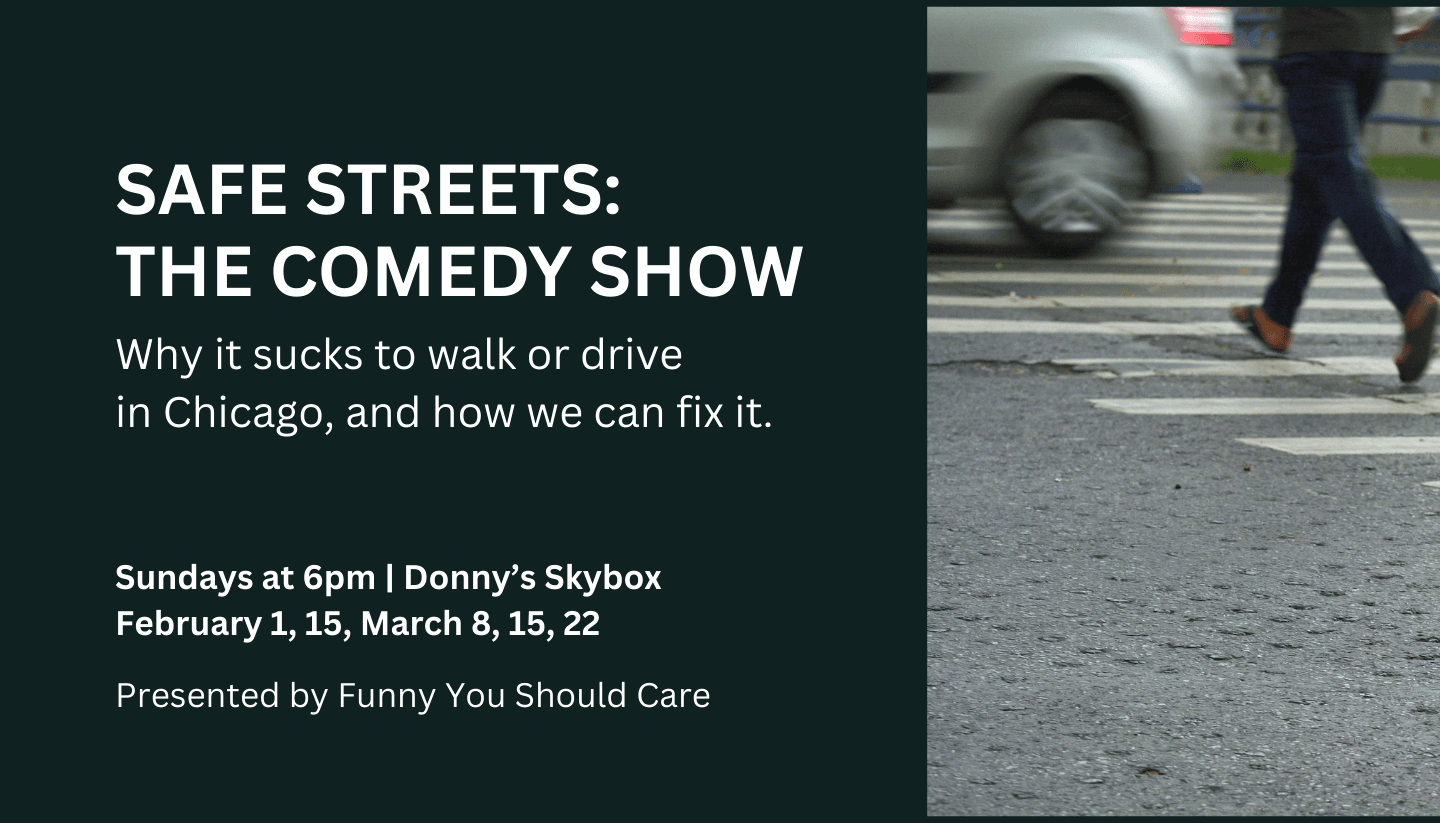 Safe Streets: The Comedy Show is an “edu-comedy” revue blending sketch, improv, and satire to explore why getting around Chicago feels so bad — and why it doesn’t have to. From car crashes to congestion, jaywalking myths to “just one more lane” logic, this show takes on the systems behind our streets, not just the people stuck using them.