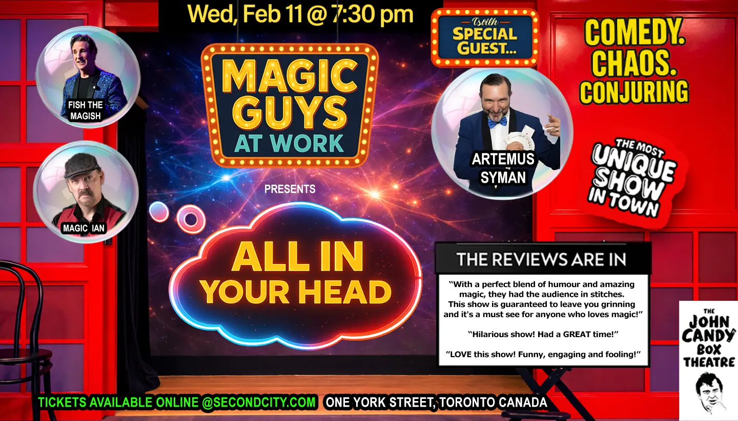 Magic Guys at Work: All In Your Head is a high-energy night of comedy, magic, and mind-bending mentalism that will leave you laughing, gasping, and questioning reality.