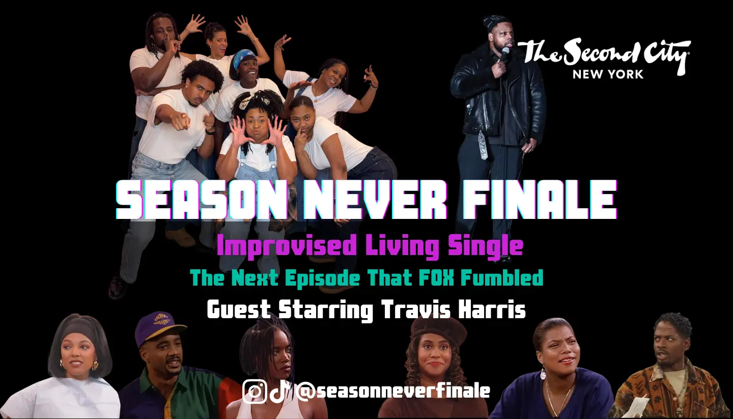 Season Never Finale is the improv show that refuses to let good Black TV die. We’re dedicating our upcoming season to Living Single, bringing back the iconic vibes of Khadijah, Synclaire, Max, Regine, Kyle, and Overton. Watch as we “premiere” a brand-new improvised episode — years later, un-rebooted, and entirely off the dome. We’re kicking the night off with an opening set by the hilarious Travis Harris to set the tone before the episode begins.