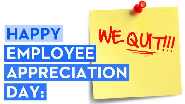 Yeah, we’re talking to you. We’ve been bending over backwards to make you happy, but today is our day. So Happy Employee Appreciation Day… WE QUIT.