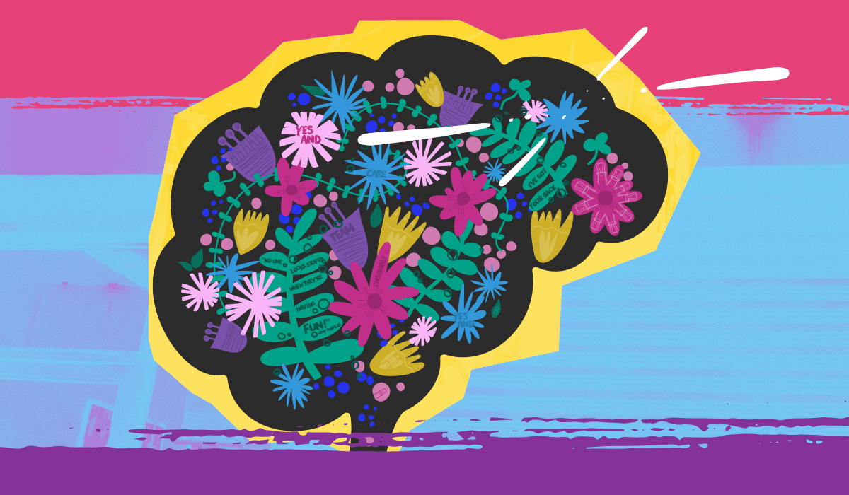 By studying the brain activity of jazz musicians, freestyle rappers, and theatrical improvisers, neurologists Charles Limb and Allen Braun found that while improvising, the side of the brain that controls language and creativity (medial prefrontal cortex, to be exact), lights up with activity. Simultaneously, the side of the brain that acts like our voice of doubt (dorsolateral prefrontal cortex), quiets. The result? A perfect playground for collaboration and improvisation, free of self-doubt and overthinking.
