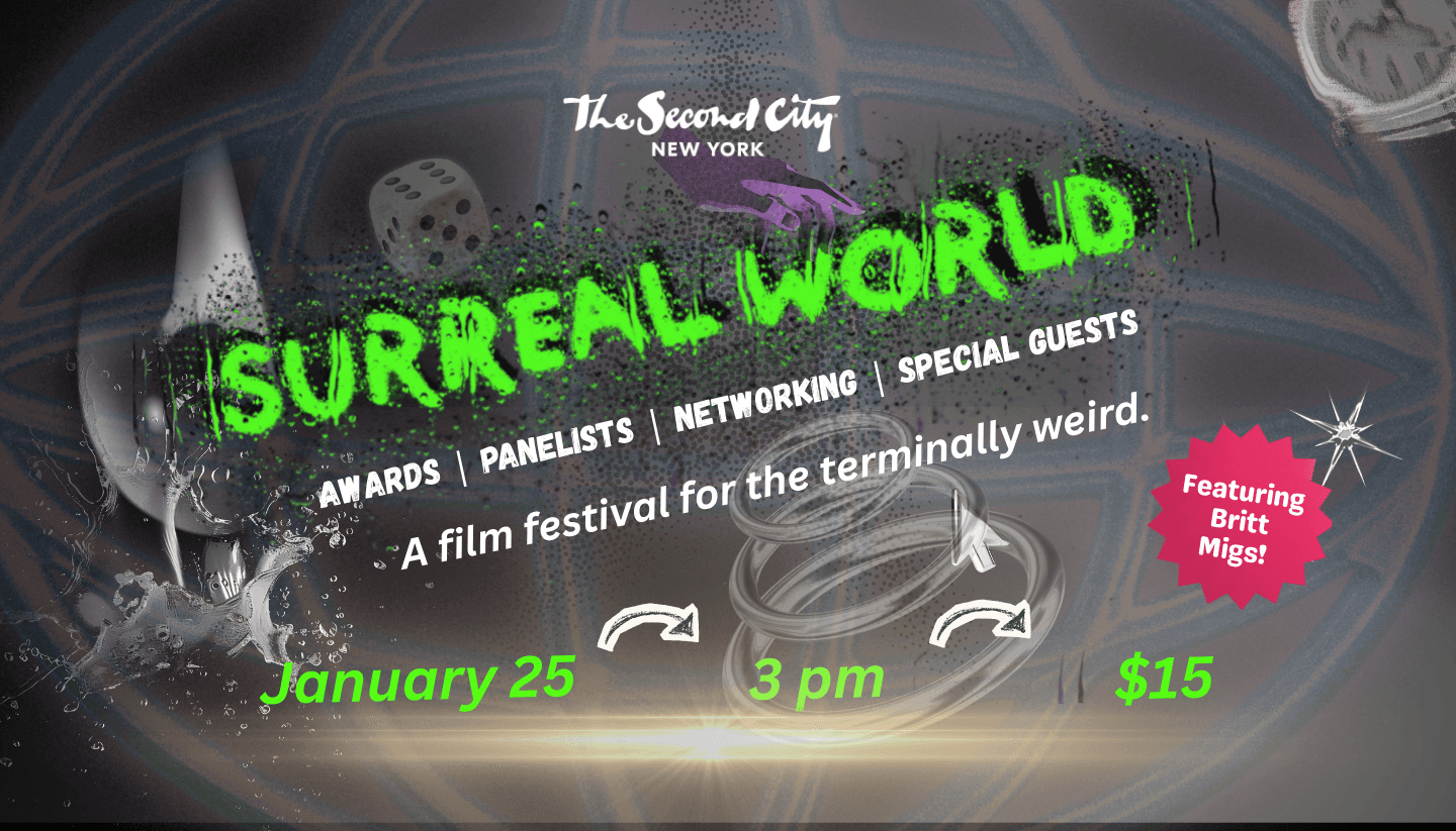 Join us for the first-ever SurREAL World film fest. This is geared toward DIY films in absurdist comedy. Watch a collection of shorts from the cream-of-the-comedy crop and enjoy an industry panel hosted by Britt Migs. Industry guests include Cinder Chou, Dana Michael, and more. Afterward, join us for a networking and cocktail hour at Second City’s bar directly outside the Black Box.